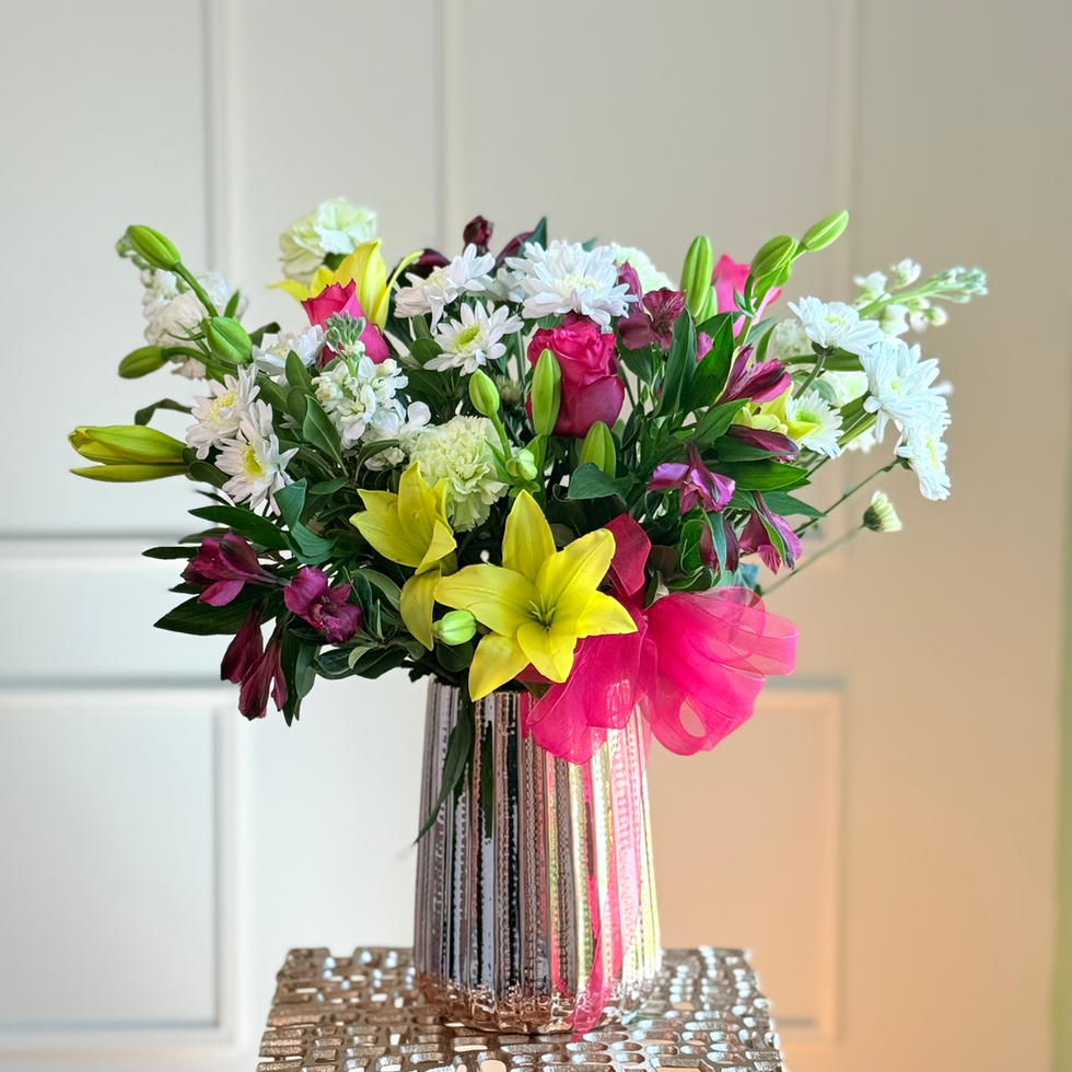 An elegant and refreshing floral arrangement that combines the gentle beauty of lilies with the charm of seasonal blooms.